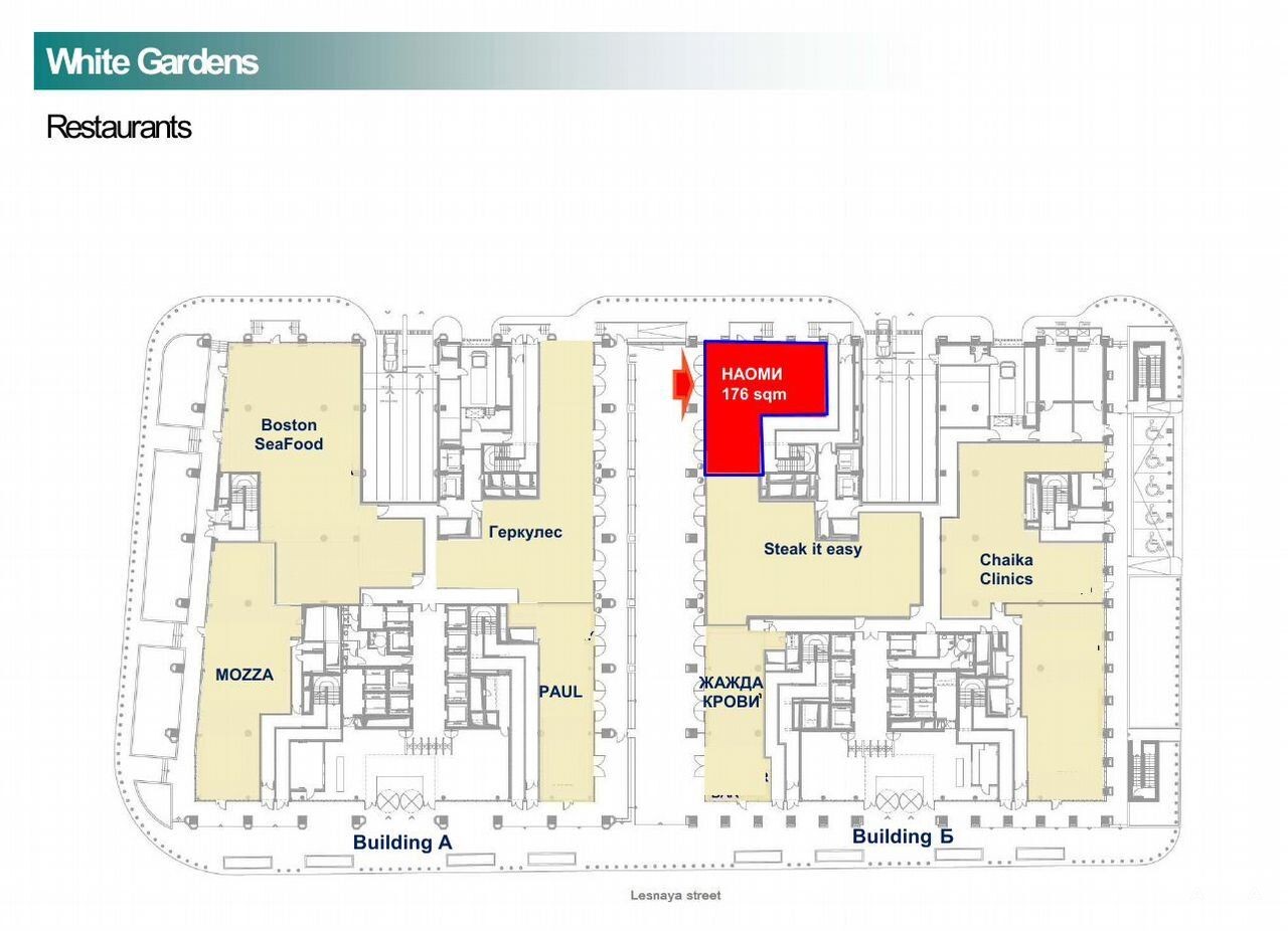 В аренду предлагается помещение свободного назначения 176 кв.м. в 2-ух минутах пешком от станции метро "Белорусская", расположенное на первом этаже бизнес центра White Gardens.