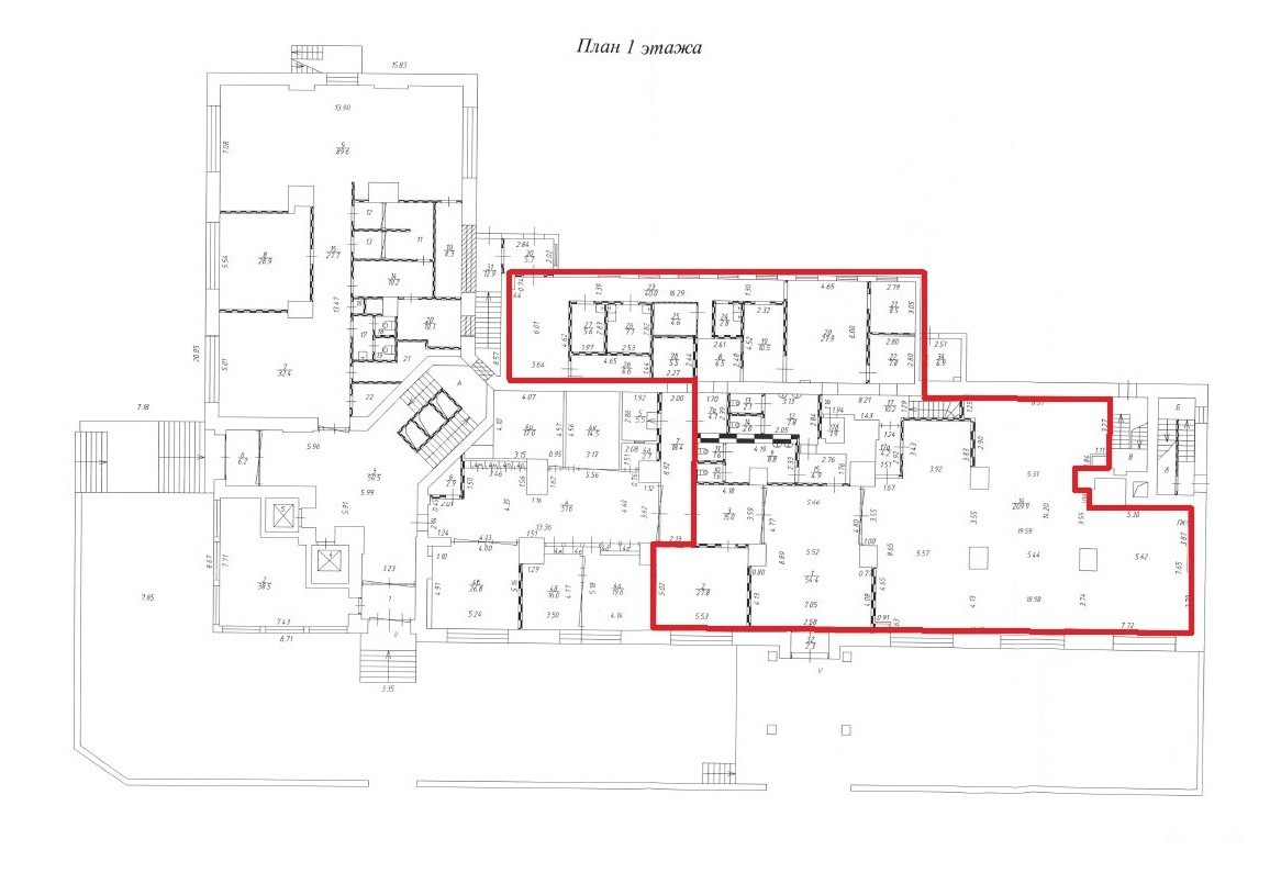 1 этаж –492 кв. м; подвал –47 кв. м.