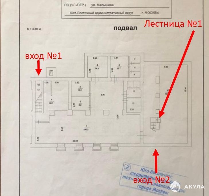 Общая площадь - 409 м2. Подвал. Высокие потолки, высота 4 метра, две большие комнаты с открытой планировкой, два отдельных входа, с 1-й линии и со двора, двор без шлагбаума, удобная зона разгрузки. Первый этаж над помещением нежилой. Есть 4 больших окна на улицу. Мощность 45 кВт. Сухое помещение с новыми коммуникациями!