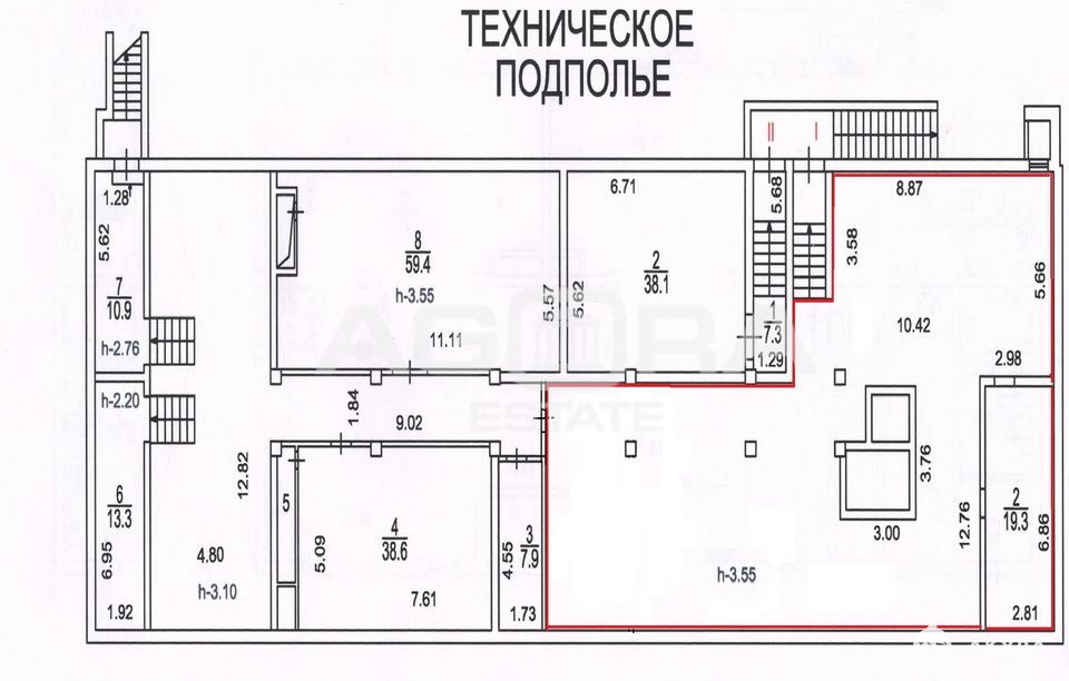 Планировка зальная, высокие потолки 3, 55 м, все городские коммуникации, вентиляция. С ремонтом.