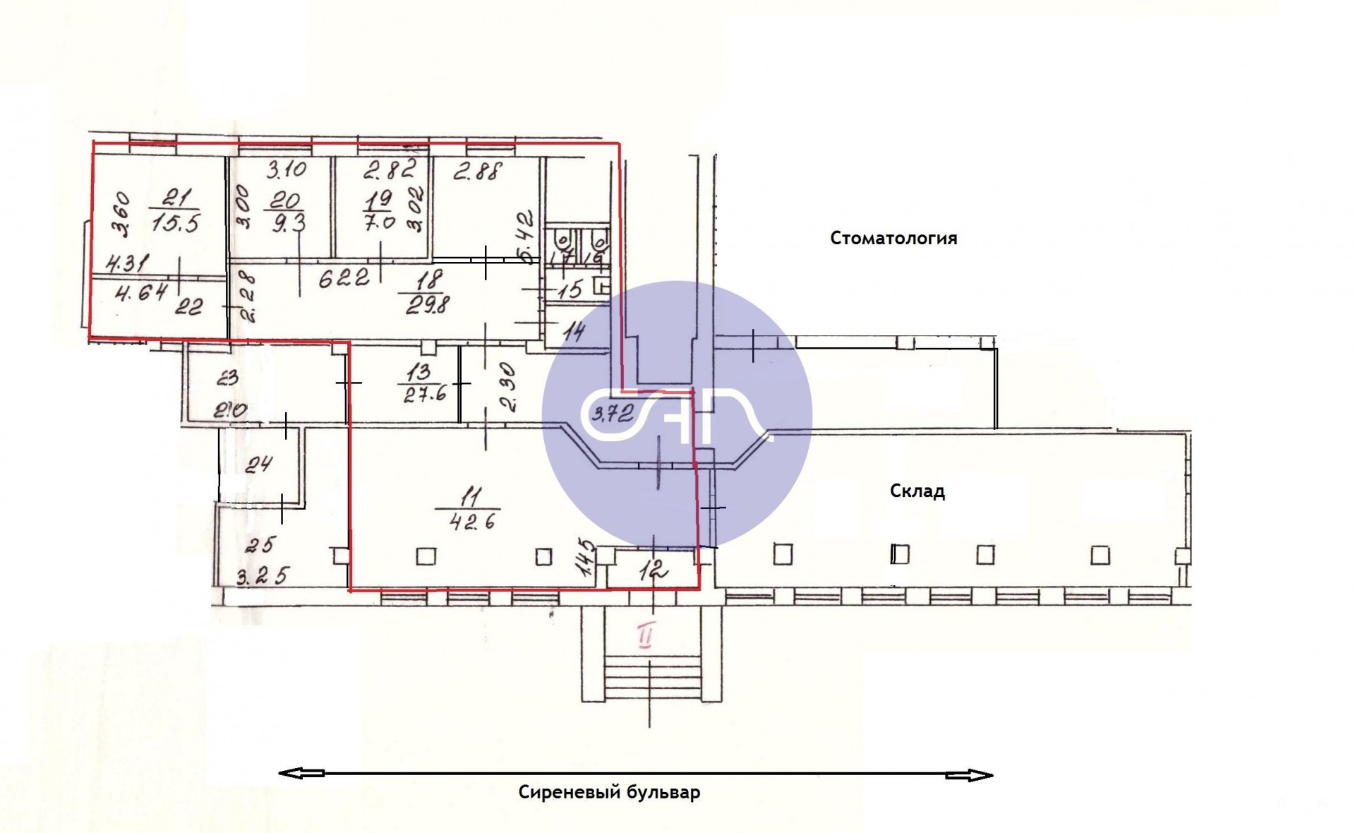 •Вывеска: место для размещения на фасаде.