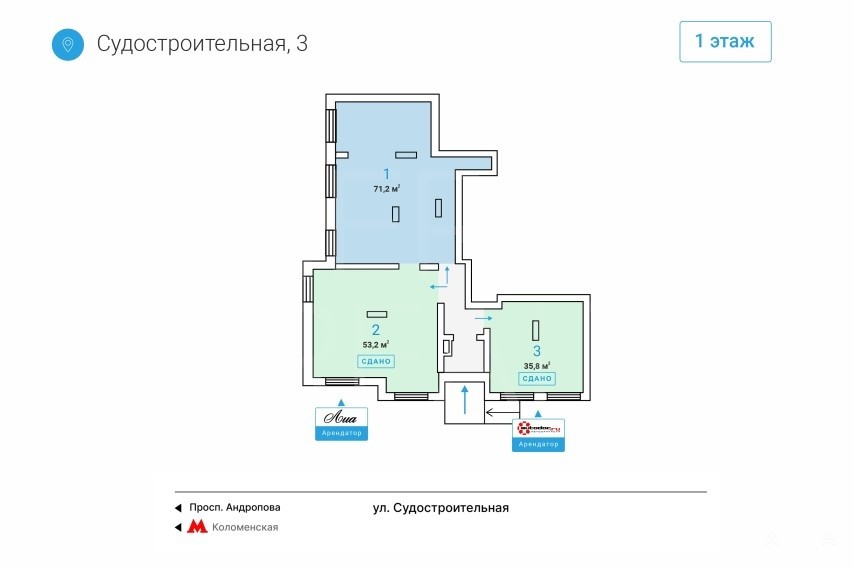 Аренда Street Retail площадки 71.2 м² в ЮАО: привлекательный бизнес-локал рядом с метро Коломенская!