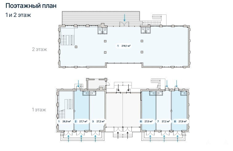 Гибкость планировок: Широкий выбор площадей — от уютных 27 м² до просторных 243 м². Можно найти решение для стартапа, шоу-рума, салона услуг, офиса или магазина.