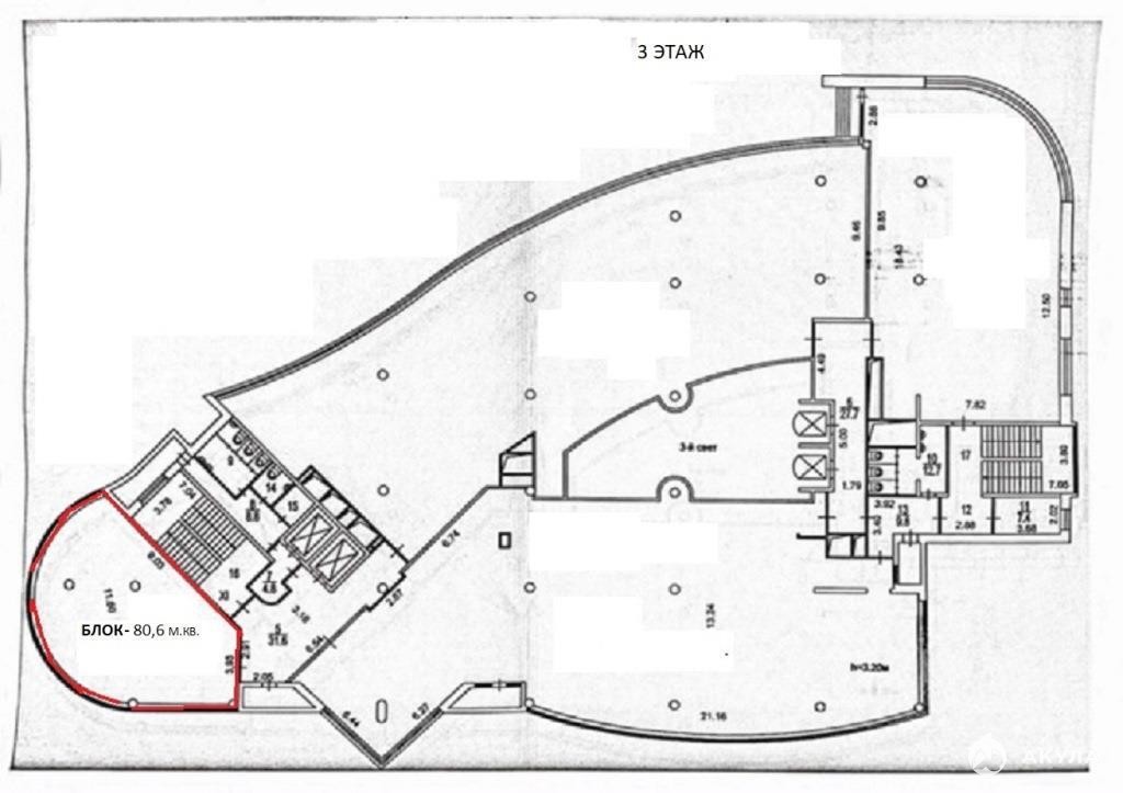 — 3 этаж — 80, 6 м² — 174 600 руб./мес. (3 раздельных комнаты и прихожая)
