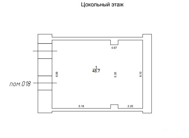 Общая площадь помещения — 48, 7 м². Расположено на 1 этаже с двумя отдельными входами с улицы. Высота потолков составляет 3, 7 м. Выполнена чистовая отделка.