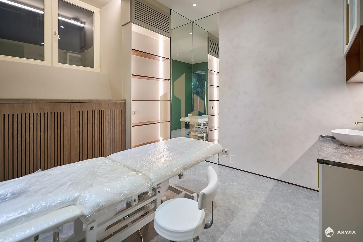 Выполнен качественный дорогостоящий ремонт с использованием премиальных материалов. Планировкой предусмотрены 4 просторных кабинета разной площади с душевыми, санузел, ресепшн при вход и помещение для персонала.