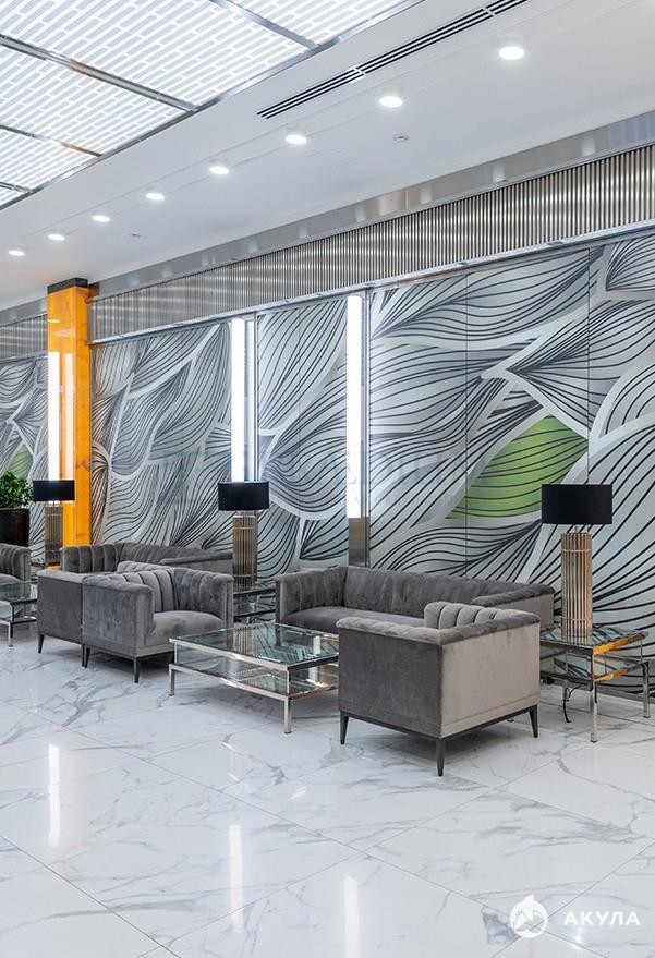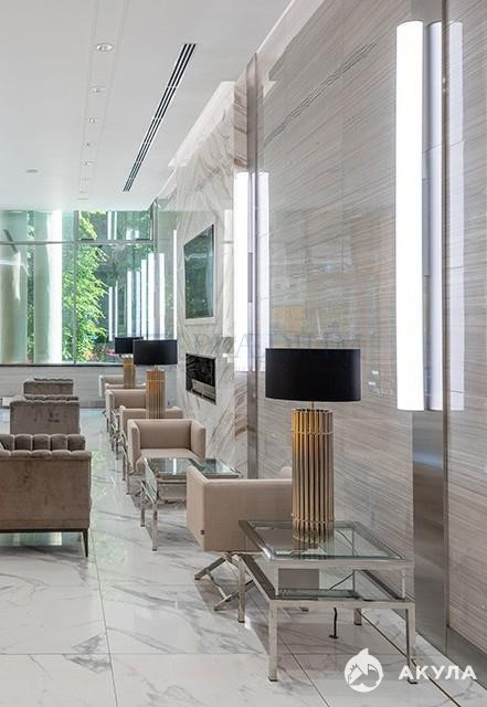 Вход из лобби БЦ, есть отдельный для погрузки/разгрузки.