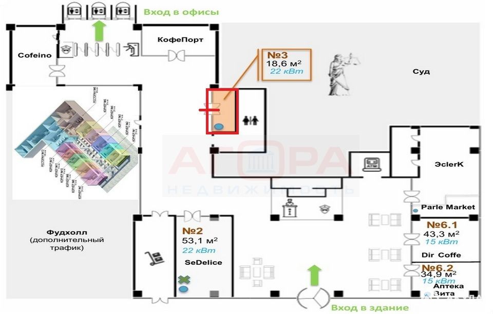 Аренда торгового помещения площадью 18, 6 м2 в БЦ класса В+ на территории делового квартала, в здании Верейская плаза 4, Можайский район, ЗАО. Помещение расположено на 1-м этаже, открытая планировка, есть мокрая точка. Финишная отделка. Предоставляются арендные каникулы. Блок на плане 3. Электрические мощности 22 кВт. Панорамное остекление, высота потолков 3, 4 м. Приточно-вытяжная вентиляция, центральное кондиционирование и отопление. В здании БЦ установлены скоростные панорамные лифты. Системы видеонаблюдения и охраны. Оптико-волоконные линии связи. Наземный паркинг.