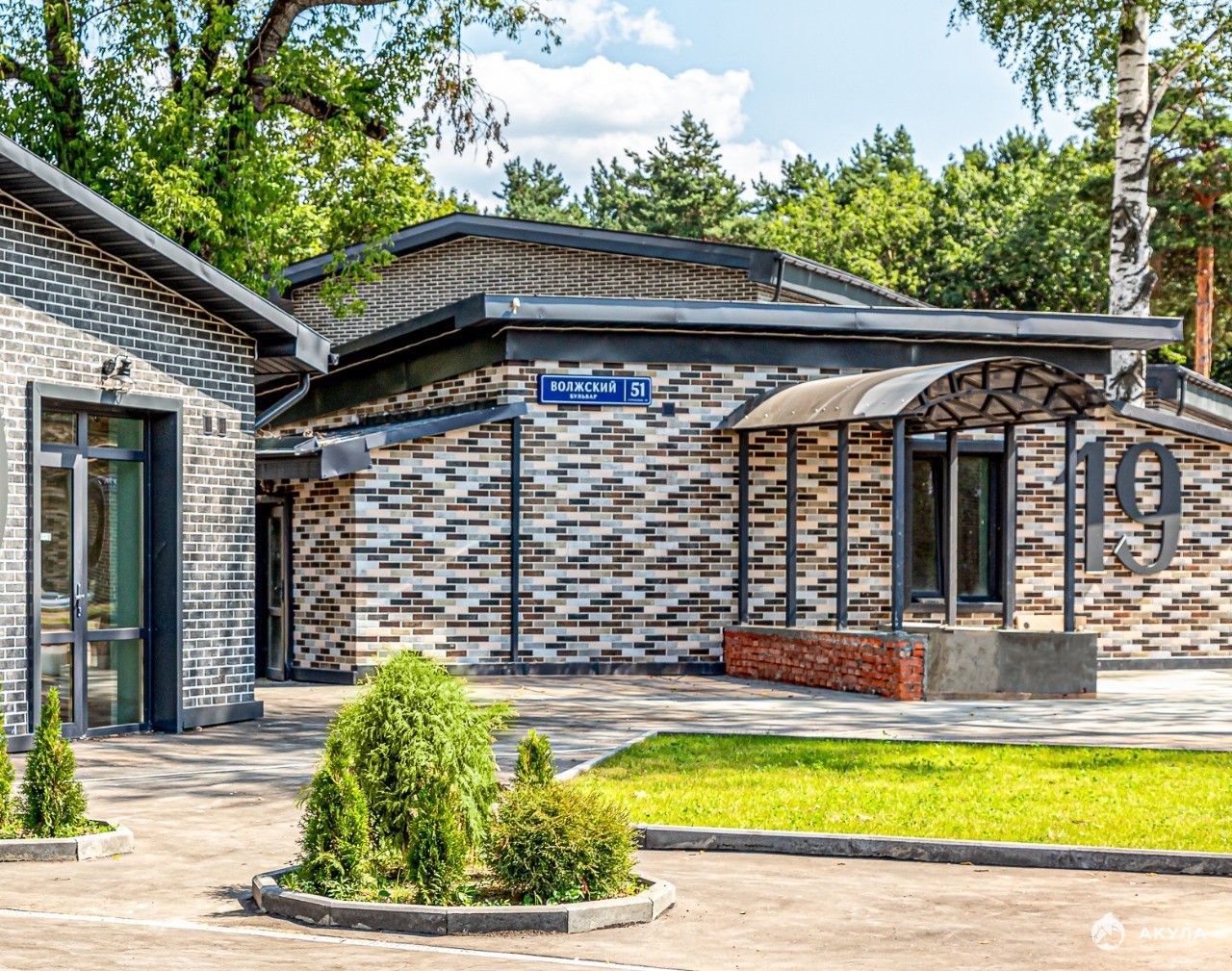 Отделка фасадов выполнена панелями с имитацией клинкерного кирпича. Дополнительно на территории организованы зоны отдыха на свежем воздухе, также дополнительно имеется возможность для организации летних веранд и кафе.