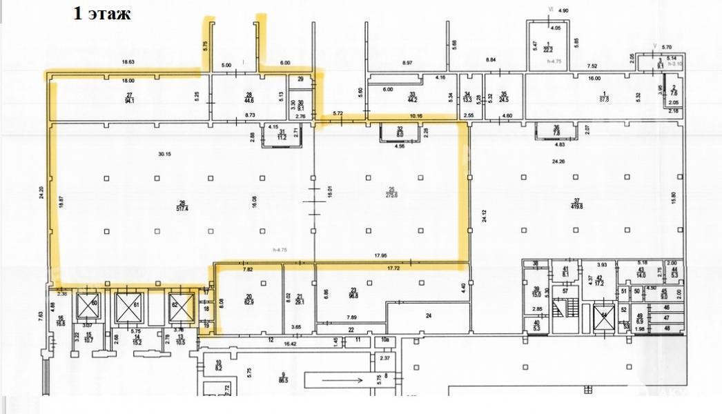 Высота потолков составляет 4, 75м, предусмотрены ворота на нулевой отметке и зона для погрузочно-разгрузочных работ. На этаже расположена мокрая точка, электричество от 100 кВт с возможностью увеличения. Подключены все центральные коммуникации.
