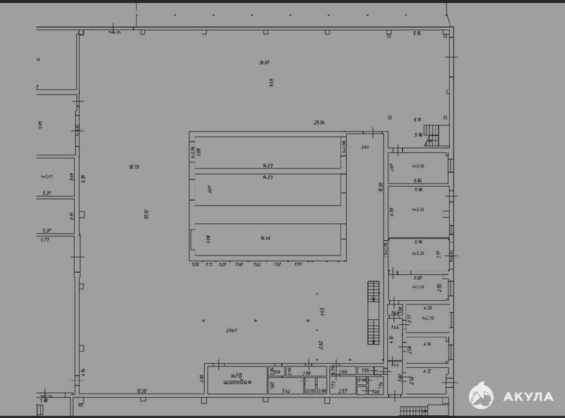 Помещение имеет квадаратную форму. Посередине расположены три прямоугольные постройки, составляющие единые блок. Каждая постройка 14-х 3 метра. На схеме понятно где они расположены. Эти три постройки внутри пустые и могут использоваться. В переспективе нескольких месяцев эти внутренние постройки будут разбираться. Смотрите схему.