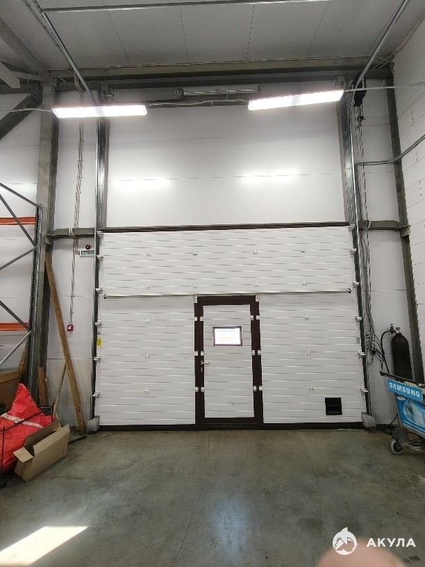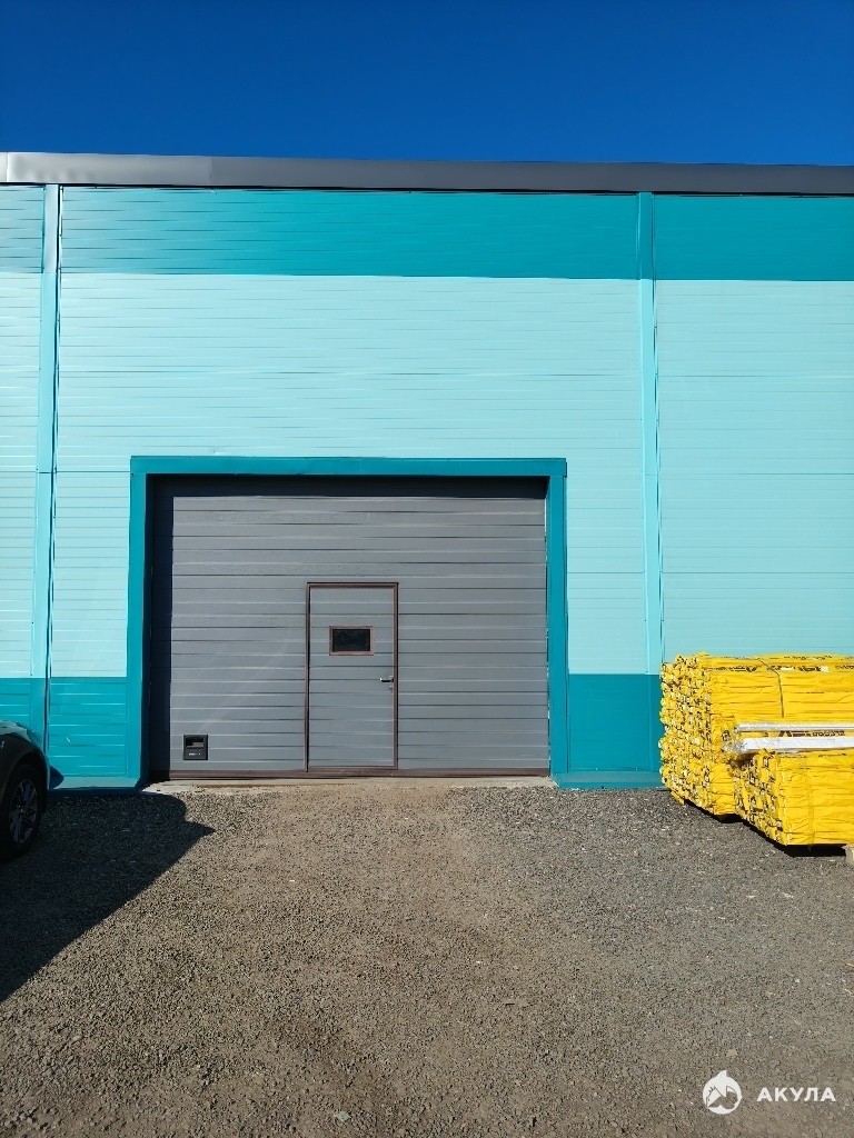 - Объект оборудован секционными воротами с калиткой; размеры конструкции: ширина — 4 м, высота — 3, 5 м.