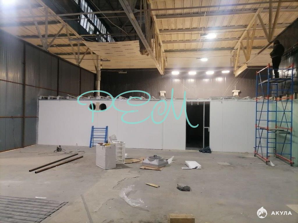 1 этаж: Потолки высотой 7 м, ворота в уровень пола с возможностью въезда транспорта, открытая планировка без колонн, антипыльное покрытие пола, раздевалки с душевыми, все коммуникации (электричество, отопление, вода, канализация). Мощность электричества — 45 кВт.