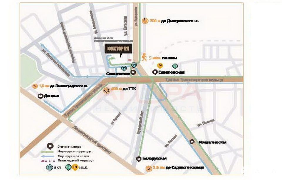 Удобная транспортная доступность: выезды на ТТК, Бутырскую улицу, Дмитровское шоссе и Ленинградский проспект, станция метро Савеловская в 7-ми минутах пешей ходьбы.