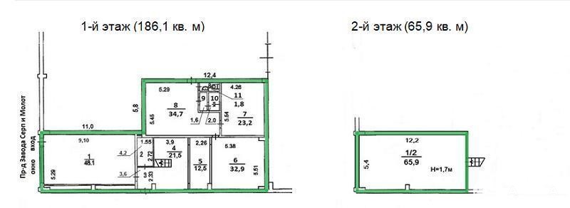 Энже. ПСН. Отдельный вход с проезда Завода Серп и Молот. Большое окно с роль-ставнями. Помещение № 1 (48, 1 кв. м) имеет отделку под шоурум/офис (возможно отопление электричеством), остальные помещения складского типа, не отапливаемые. Электрическая мощность – 30 кВт. Парковка перед входом возможна только для погрузки-разгрузки (не для парковки).