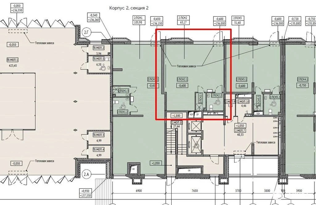 этаже, рядом с центральным входом в главное лобби ЖК, на первой линии
