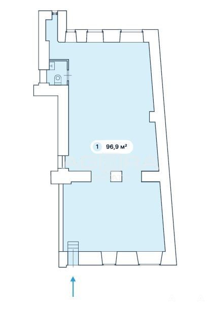 Площадь помещения - 96, 9 кв.м, расположено на 1 этаже/ 5-ти этажного жилого дома, отдельный вход с улицы. Планировка — открытая (свободная), перекрытия — ж/б, большие окна по фасаду. Все городские инженерные коммуникации. Помещение с отделкой, имеется вытяжка на кровлю дома.