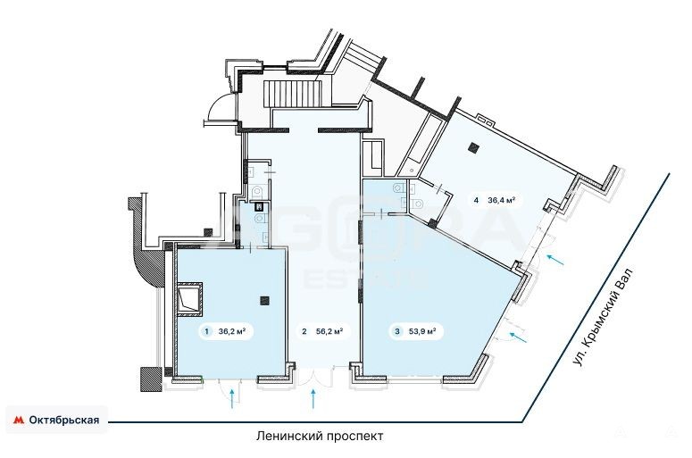 Аренда помещения общей площадью 53, 9 кв.м. (блок № 3 на плане), расположенного на 1-м этаже жилого дома. Станция метро Октябрьская, менее минуты пешком. Отдельный вход с фасада. Центр города, интенсивный автомобильный трафик, активный пешеходный поток. Около входа - остановки общественного транспорта и подземный переход. Помещение расположено в крупном сложившемся жилом районе с высокой плотностью застройки и развитой инфраструктурой. В окружении находятся жилые комплексы, большое количество бизнес-центров, МИСИС. Отлично подойдёт под любой вид деятельности: торговое помещение, магазин, ресторан, кафе, аптека, салон красоты, банк, офис продаж, кофейня и др.Объект № 551573Номер объекта: #5/551573/310