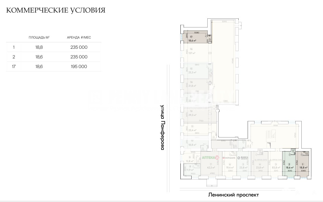 Арт. 91054847. Ленинский проспект — крупный торговый коридор, формирование которого обеспечили плотная жилая застройка и развитая инфраструктура. Проспект характеризуется высокой концентрацией ритейла, предприятий услуг и общепита. Качественный пешеходный трафик генерируют жилые дома, высшие учебные заведения и крупные бизнес-центры.