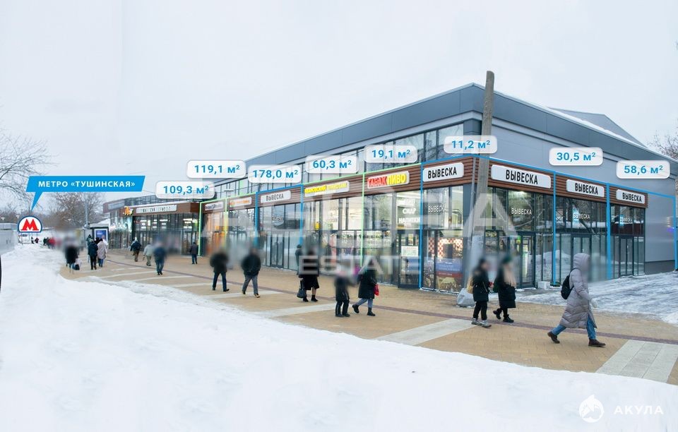 Аренда торгового помещения на выходе из метро Тушинская. Первая фасадная линия!!! 1 мин. от м. Тушинская. Предлагается в аренду помещение площадью 11, 2 кв.м (на плане № 5б), расположенное на 1-м этаже административного здания 1988 года постройки. Отдельный вход с фасада, витринное остекление. Планировка свободная. Все городские инженерные коммуникации, санузел в каждом блоке, отдельные приборы учета электричества. Огромная проходимость, отличное торговое окружение и визуализация.Объект № 547582Номер объекта: #5/547582/310