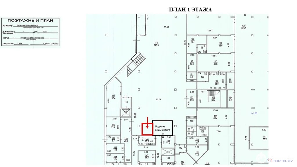 Нежилое помещение, 9 м | ЮАО, Даниловский р-н, Автозаводская ул., д. 23А, корп. 4, этаж 1, помещение № I, часть комнаты № 115