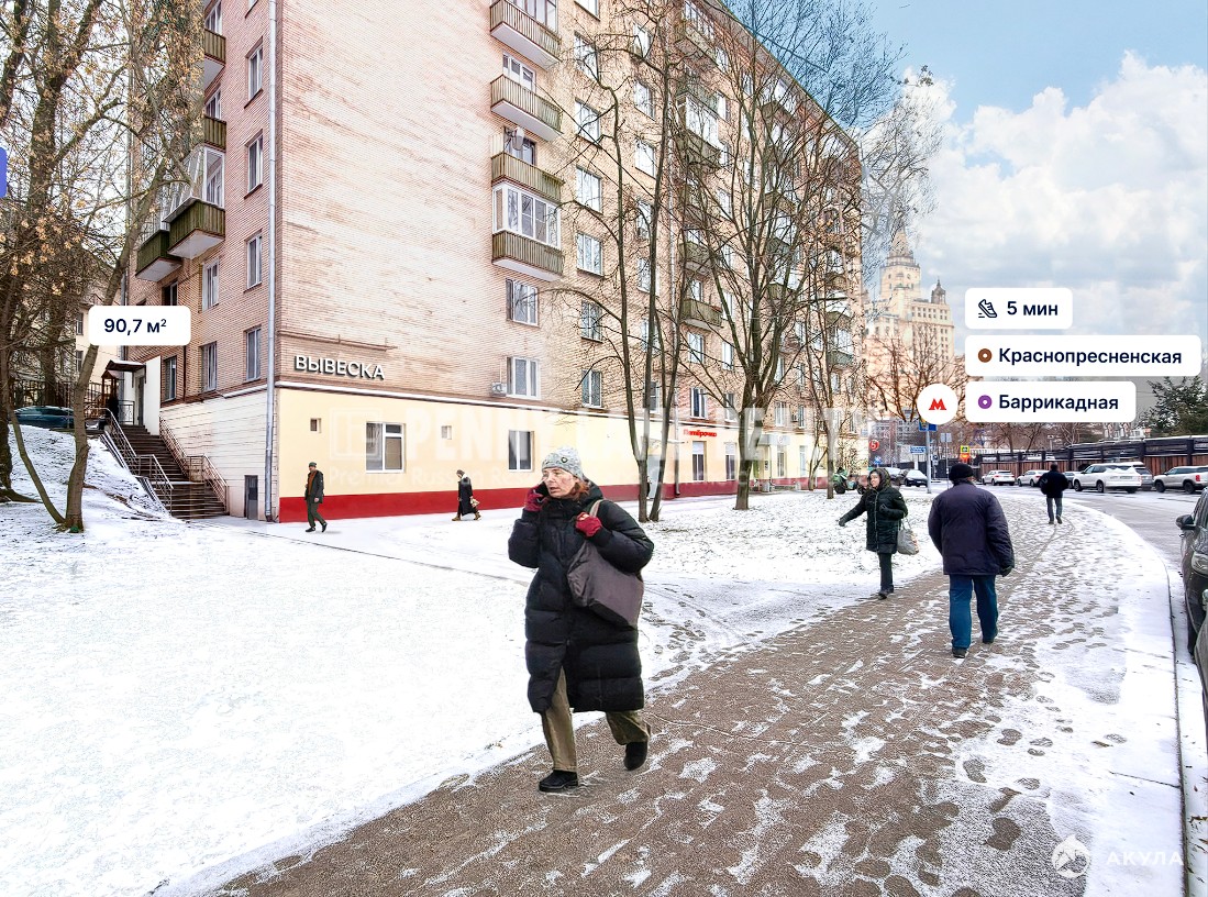 - Транспортная доступность: 5 минут пешком от станций метро «Баррикадная» и «Краснопресненская».