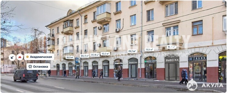 Арт. 91542594. Торговое помещение у м. Академическая с высоким проходным трафиком. Имеются в наличии площади разной квадратуры от 16.6 до 44.1 кв. м.