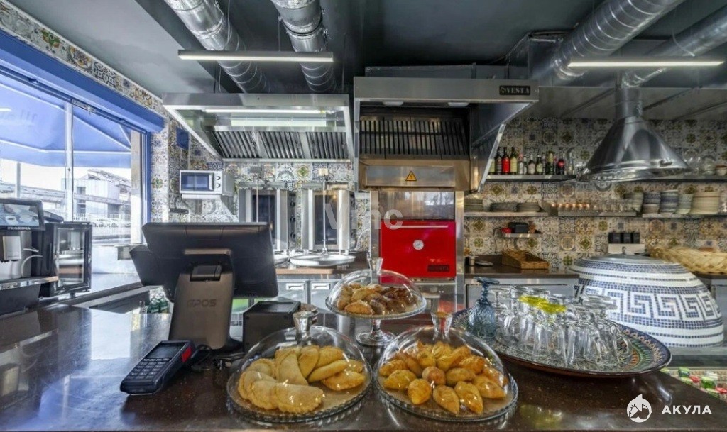 Просторный зал. Кухня укомплектована современным профессиональным оборудованием. Мощная приточно-вытяжная система, кондиционирование. Все оборудование и мебель в идеальном состоянии.
