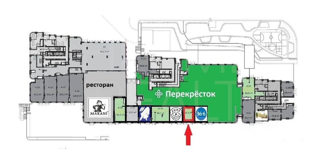 Для магазина или шоу-рума: Расположение в торговой галерее между супермаркетом и рестораном гарантирует высокий пешеходный трафик и отличные продажи.