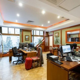 Продаётся VIP офис 300 м2. Некоторые окна тонированы, видимость снаружи отсутствует. Выполнена эксклюзивная качественная отделка: дизайнерская итальянская мебель на заказ, в том числе, из Англии, натуральные материалы: кожа, мрамор, паркетные полы, ковры ручной работы из...