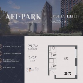 Продается просторное коммерческое помещение общей площадью 29, 7 м2 на 2 этаже в строящемся бизнес-центре AFI Park. 21-этажный бизнес-центр AFI Park - современный бизнес-центр класса A с мультифункциональной экосистемой для бизнеса, панорамным остеклением и эргономичным...