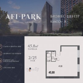 Продается просторное коммерческое помещение общей площадью 45, 8 м2 на 2 этаже в строящемся бизнес-центре AFI Park. 21-этажный бизнес-центр AFI Park - современный бизнес-центр класса A с мультифункциональной экосистемой для бизнеса, панорамным остеклением и эргономичным...