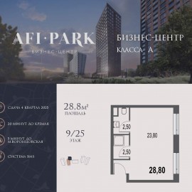 Продается просторное коммерческое помещение общей площадью 28, 8 м2 на 9 этаже в строящемся бизнес-центре AFI Park. 21-этажный бизнес-центр AFI Park - современный бизнес-центр класса A с мультифункциональной экосистемой для бизнеса, панорамным остеклением и эргономичным...