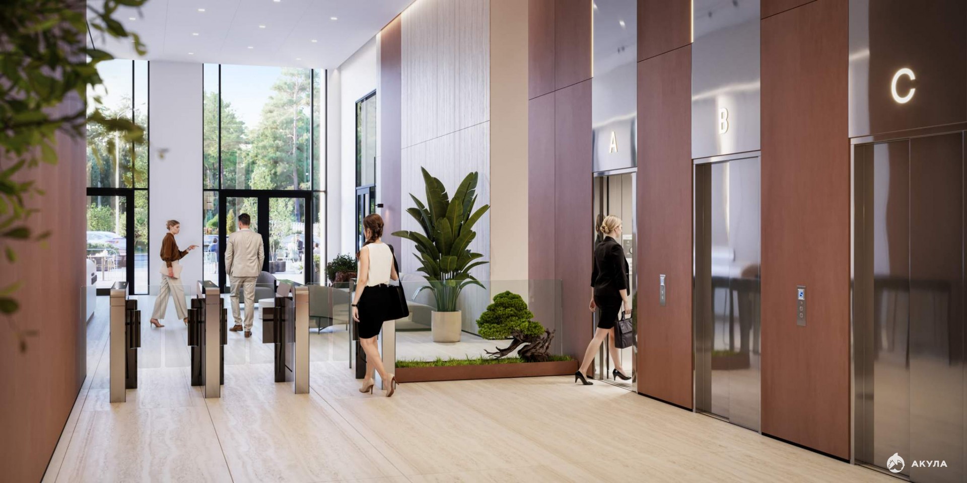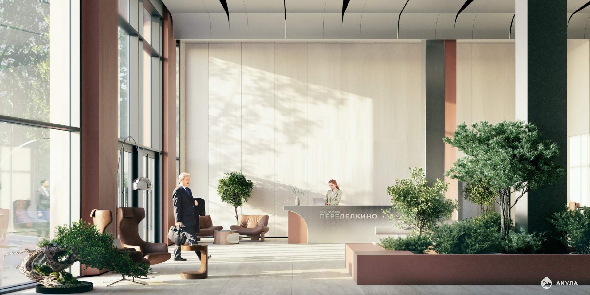 -На первых этажах офисных зданий просторные лобби с комфортной зоной ожидания, супермаркет, торговые помещения, отделения банков и сервисных служб, фитнес-студия