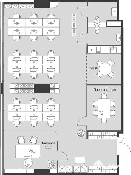 Офис под чистовую отделку, внутри открытая планировка, одна мокрая точка, тип окон - витринные, окна выходят во двор, общая площадь здания 134839.4 м, год постройки 2028 г.
