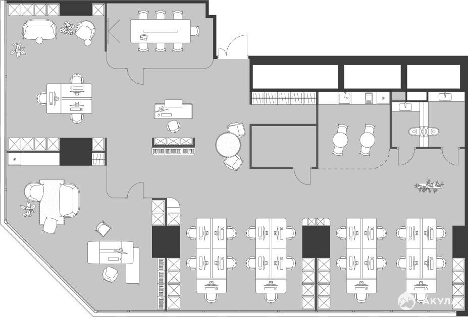 Офис под чистовую отделку, внутри открытая планировка, одна мокрая точка, тип окон - витринные, окна выходят во двор, общая площадь здания 134839.4 м, год постройки 2028 г.
