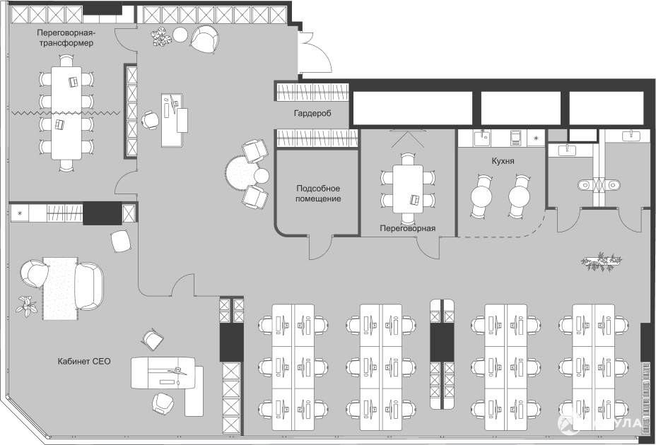 Офисное помещение площадью 254.87 м2 на 23 этаже 33-этажного здании класса A м. Зорге, район города - Хорошево-Мневники. Высота потолков: 3.6 м.