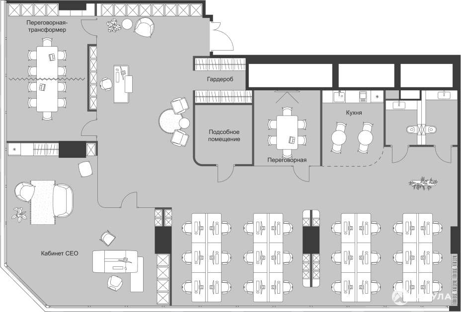 Офисное помещение площадью 243.54 м2 на 25 этаже 33-этажного здании класса A м. Зорге, район города - Хорошево-Мневники. Высота потолков: 3.6 м.