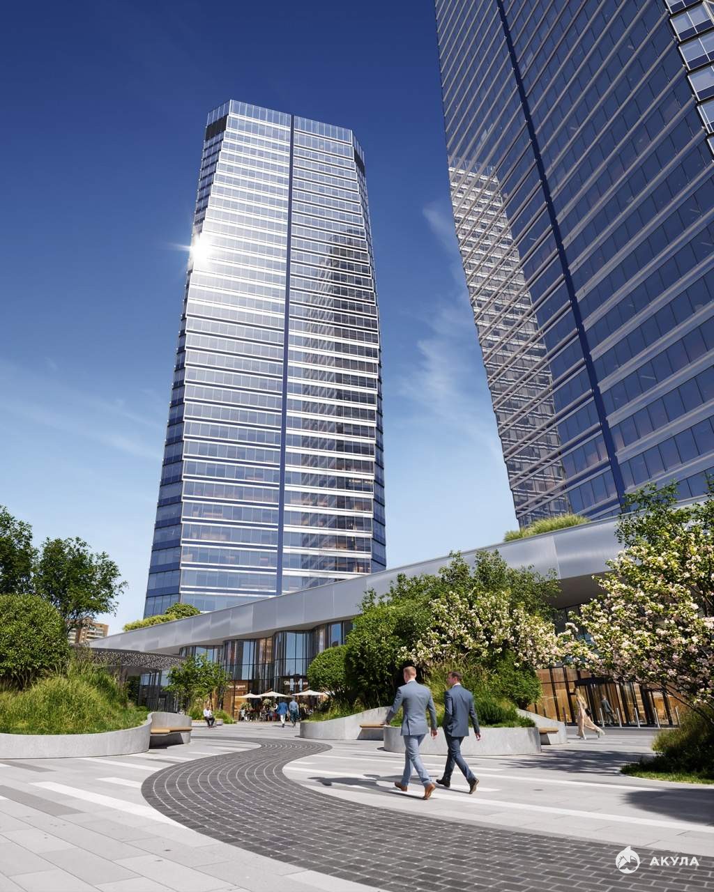 Продажа премиальных офисов в бизнес центре AVIUM. Две 34-этажные башни, объединённые галереей и дочерним корпусом.