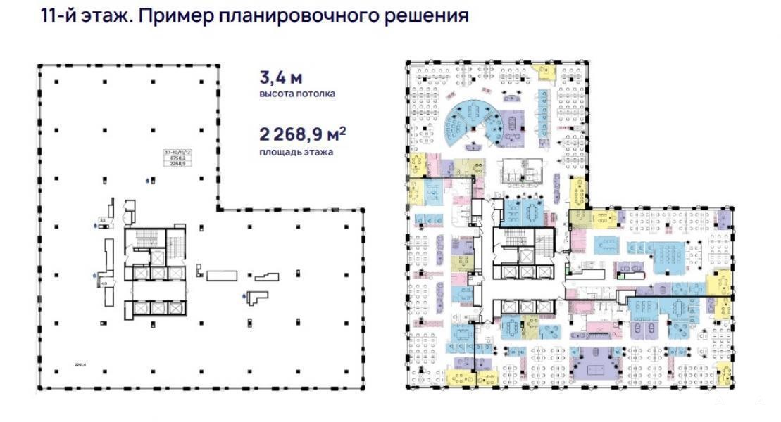 Высота потолков на 10-11 этажах: 3.4 метра, на 12 этаже: 4.8 метра