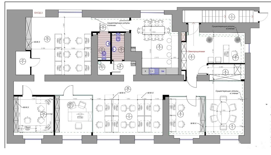 *2 входа для удобства сотрудников и клиентов.