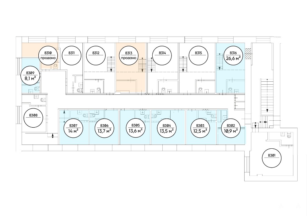 Формат универсален и ликвиден: офис, шоурум, студия, представительство компании, креативное или сервисное пространство.