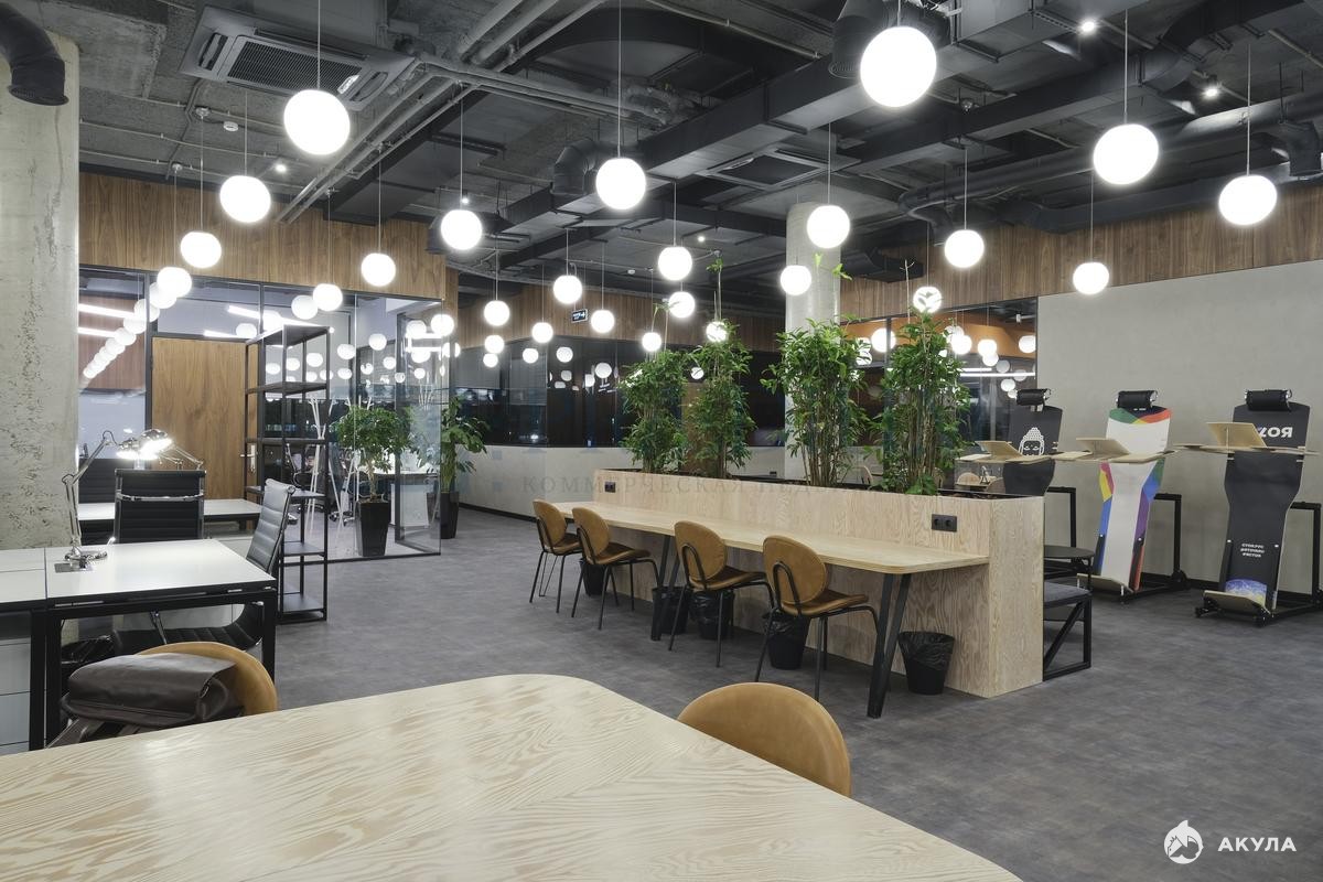 • Планировка смешанная: открытые залы сотрудников, кабинеты, переговорные комнаты, кухня, серверная, ресепшн, с/у, зона руководства.