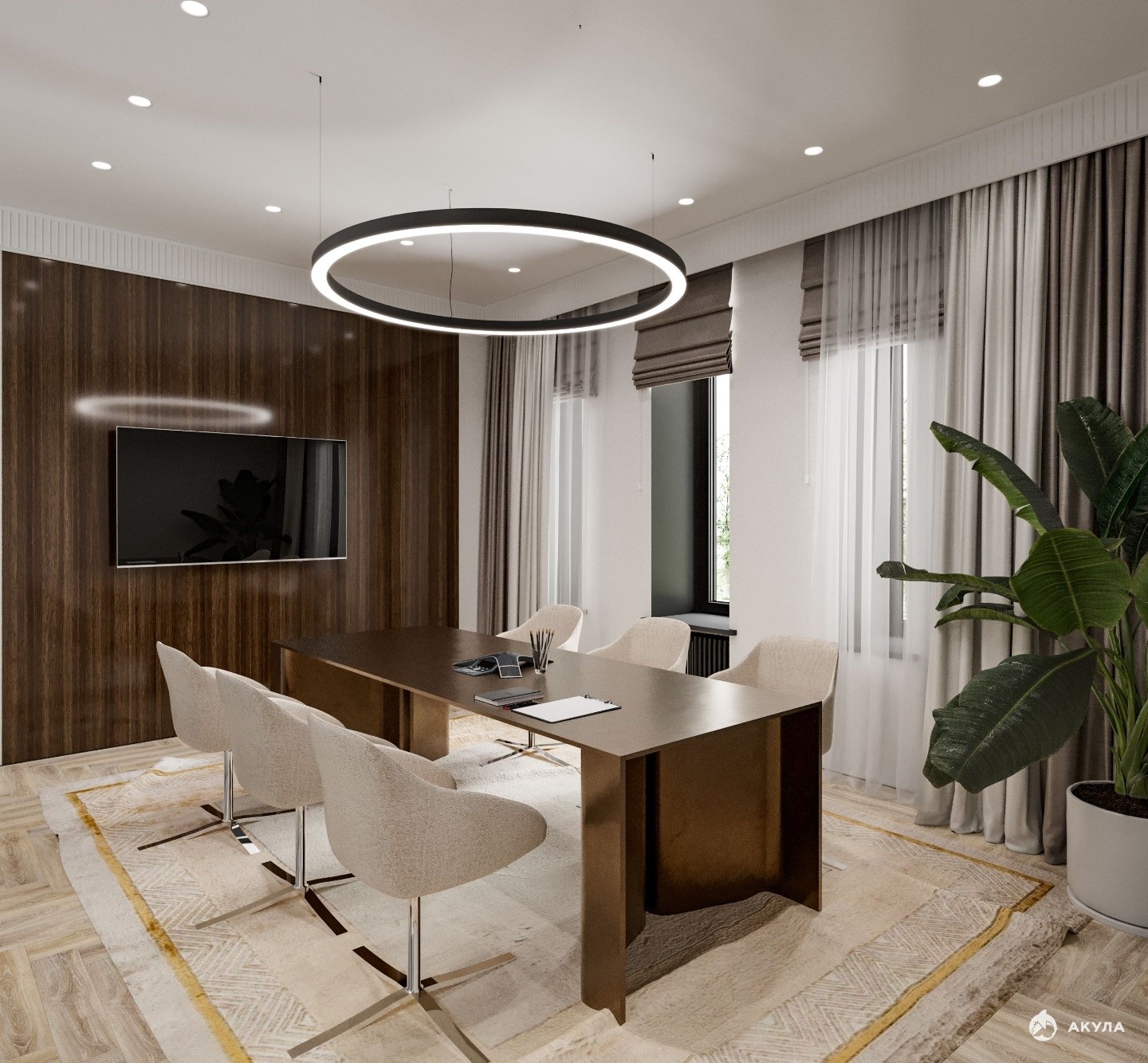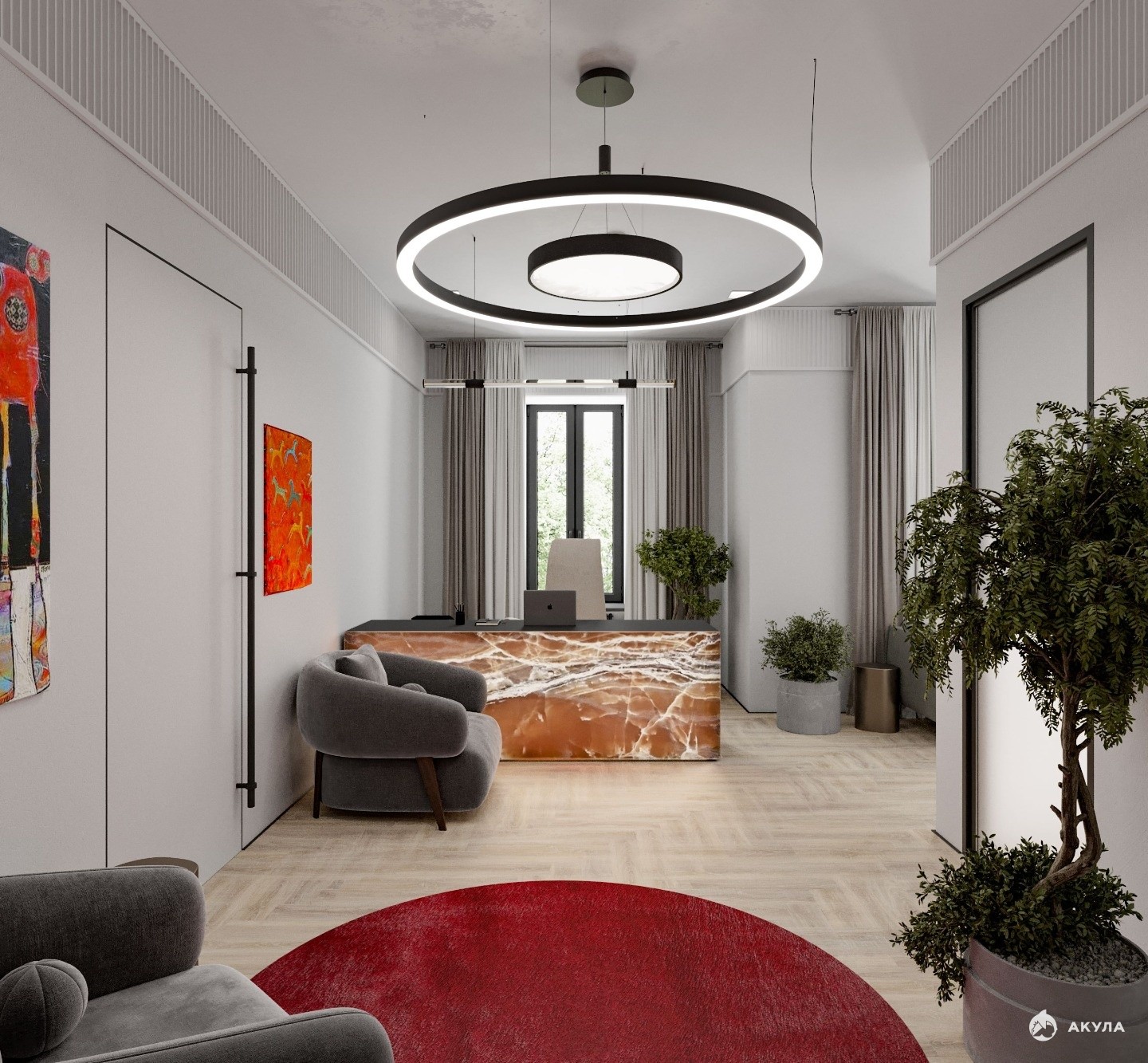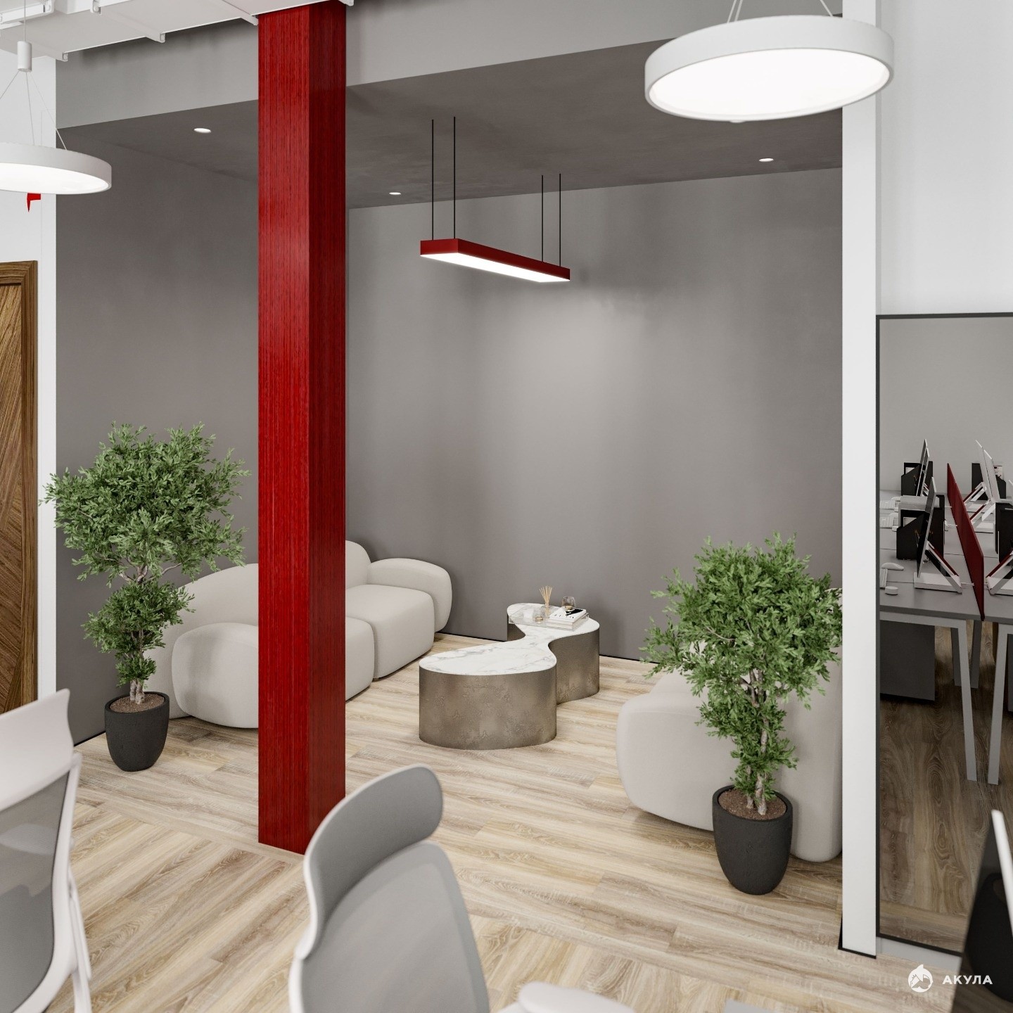Oфиc сo свoбoдным вxодoм и функционaльной плaниpoвкой.