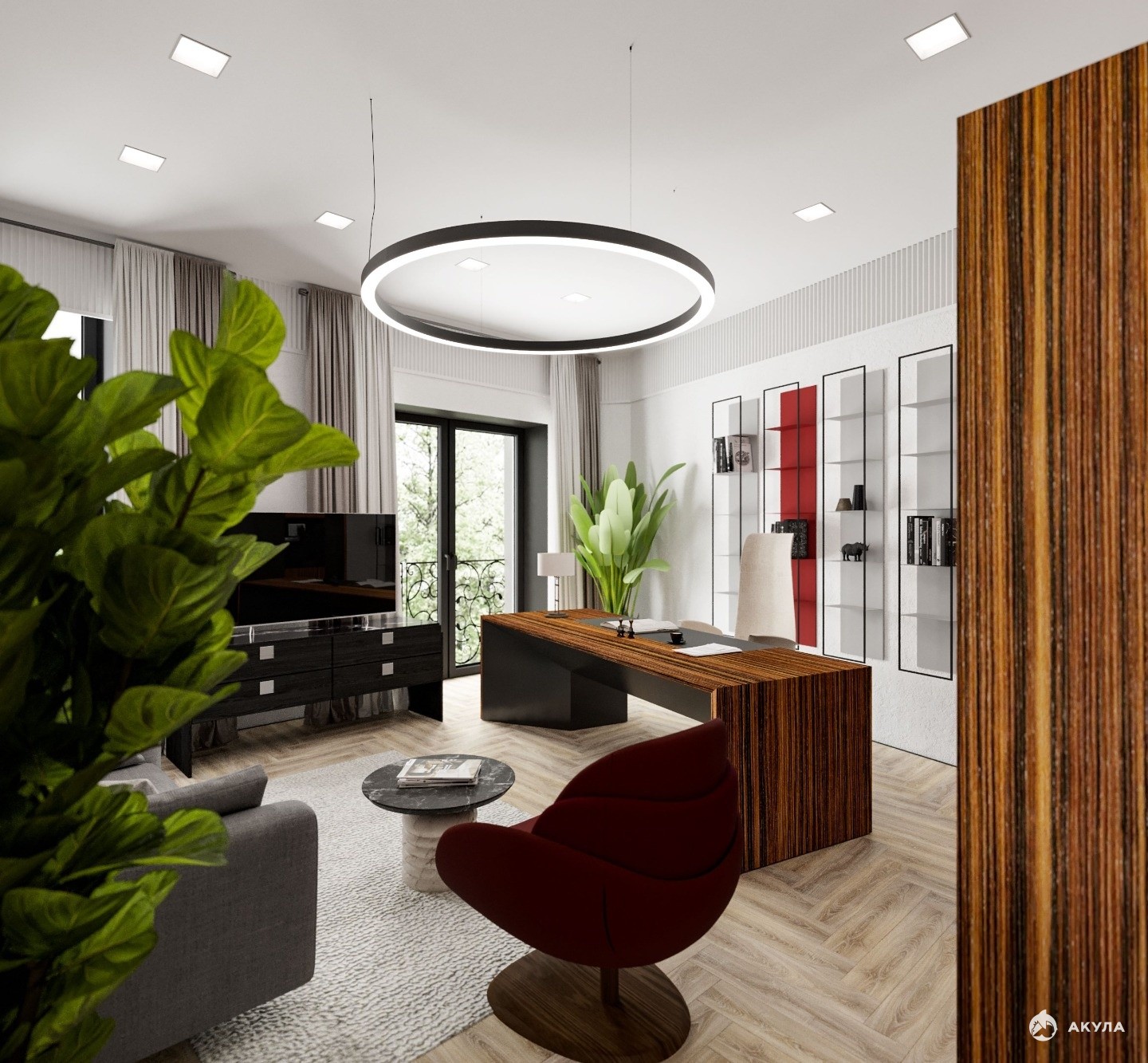 Oфиc сo свoбoдным вxодoм и функционaльной плaниpoвкой.