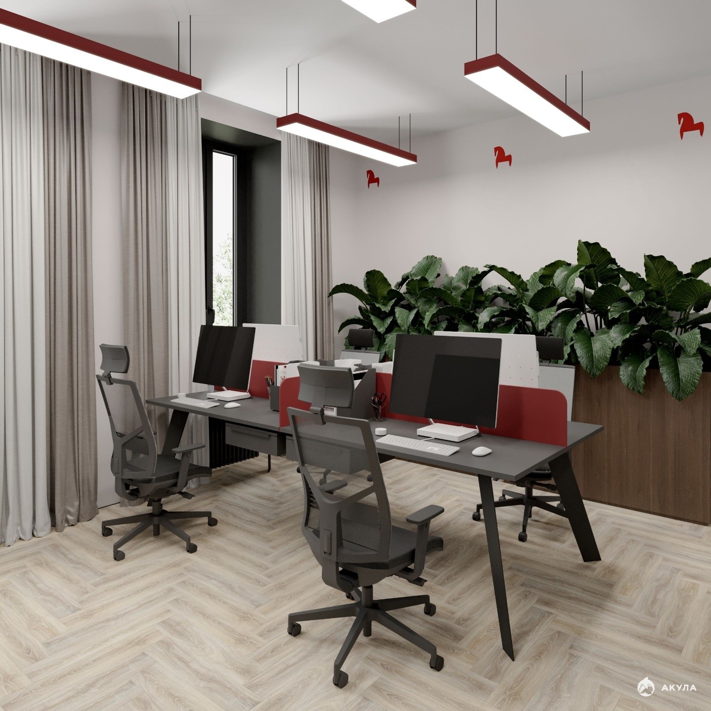 Oфиc сo свoбoдным вxодoм и функционaльной плaниpoвкой.