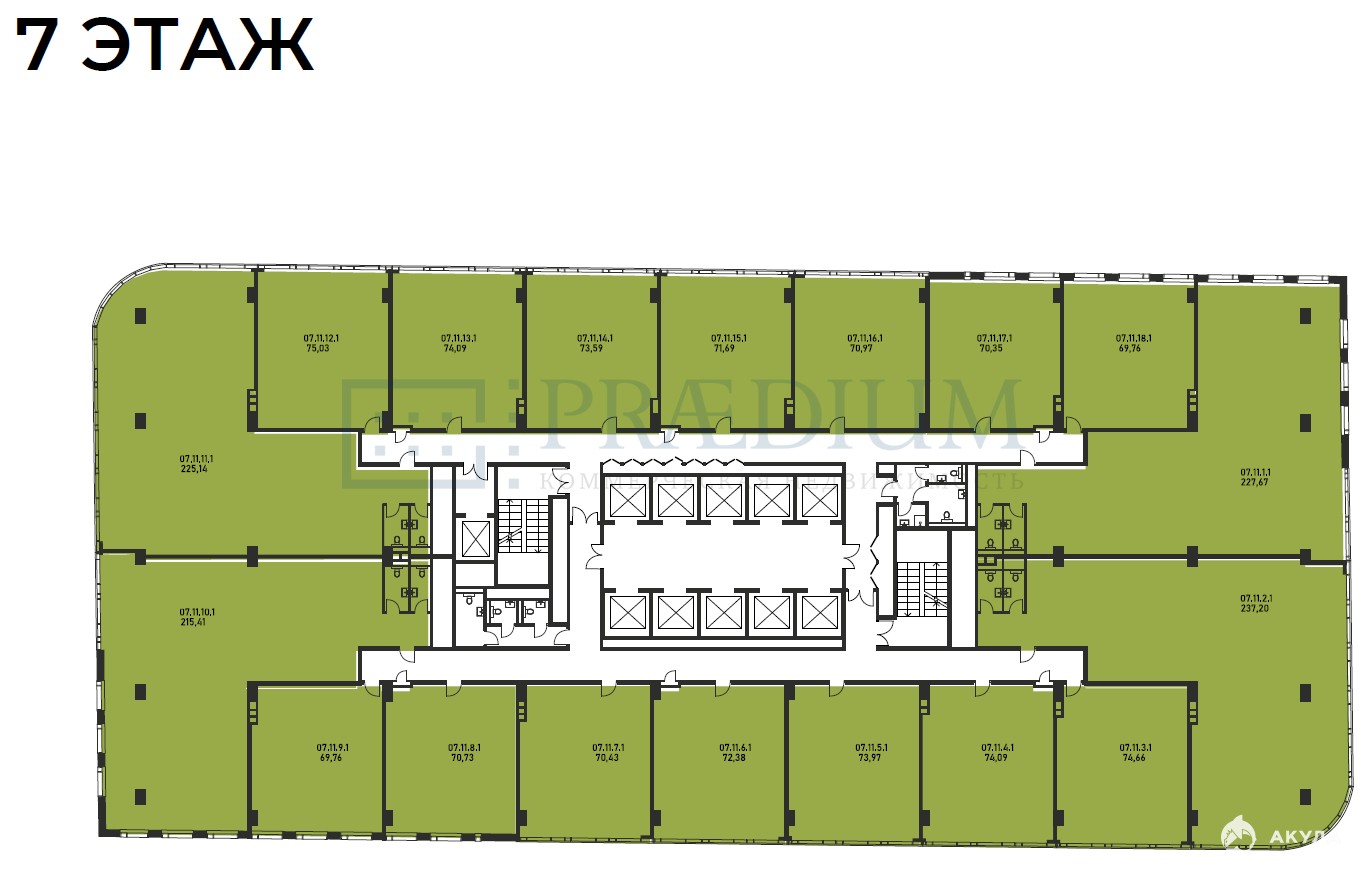 Уважаемый Покупатель, предлагаем Вам приобрести офис 215.4 м² на 7 этаже в собственность на выгодных условиях.