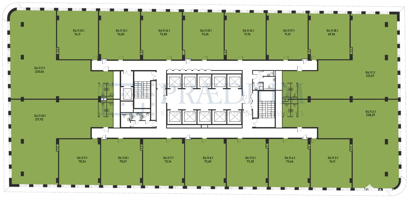 Приточно-вытяжная вентиляция. Центральное кондиционирование. Пожарная сигнализация. Интернет, телефония. Охрана. Видеонаблюдение. Система контроля доступа. Лифты: 13.