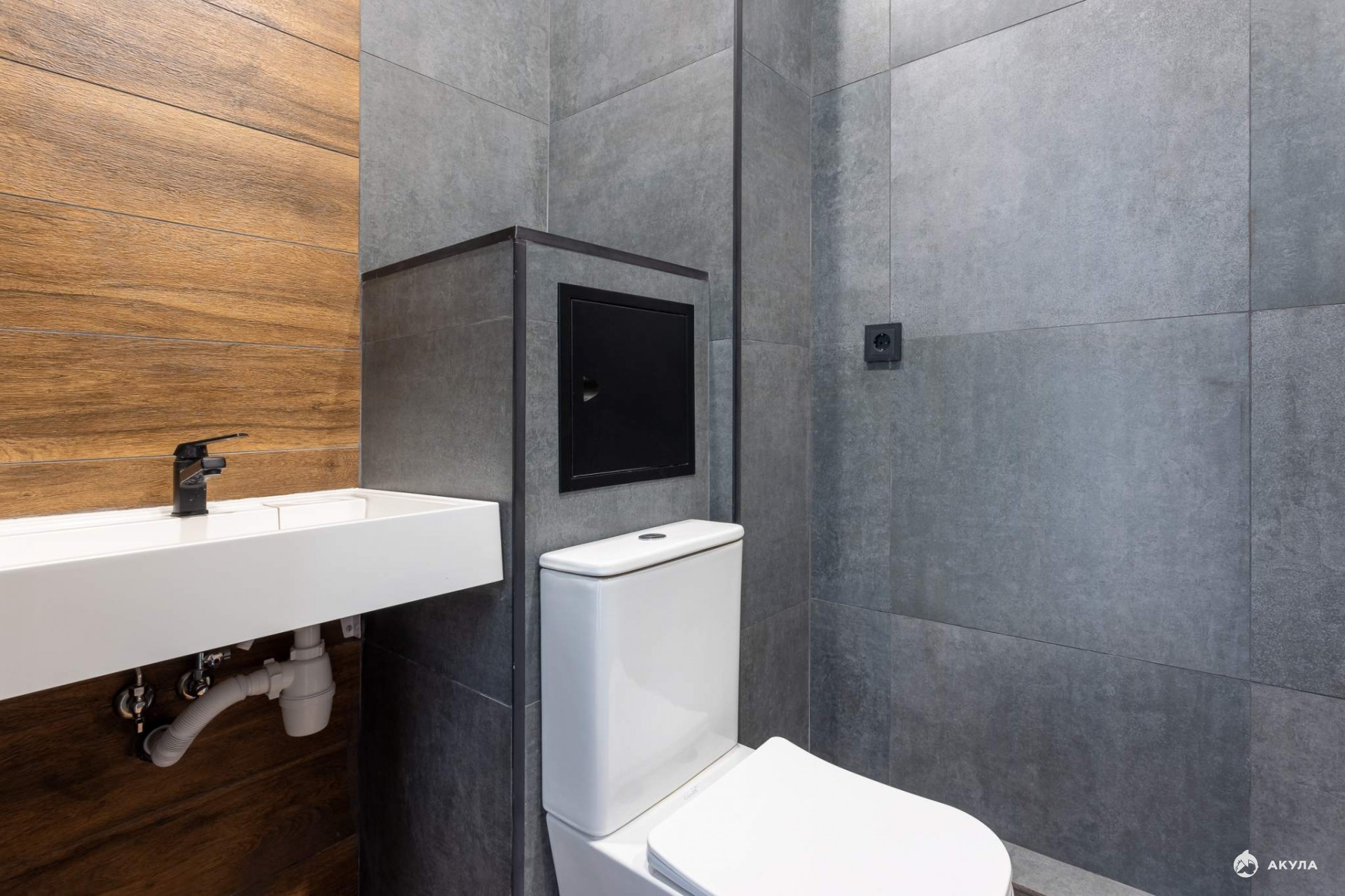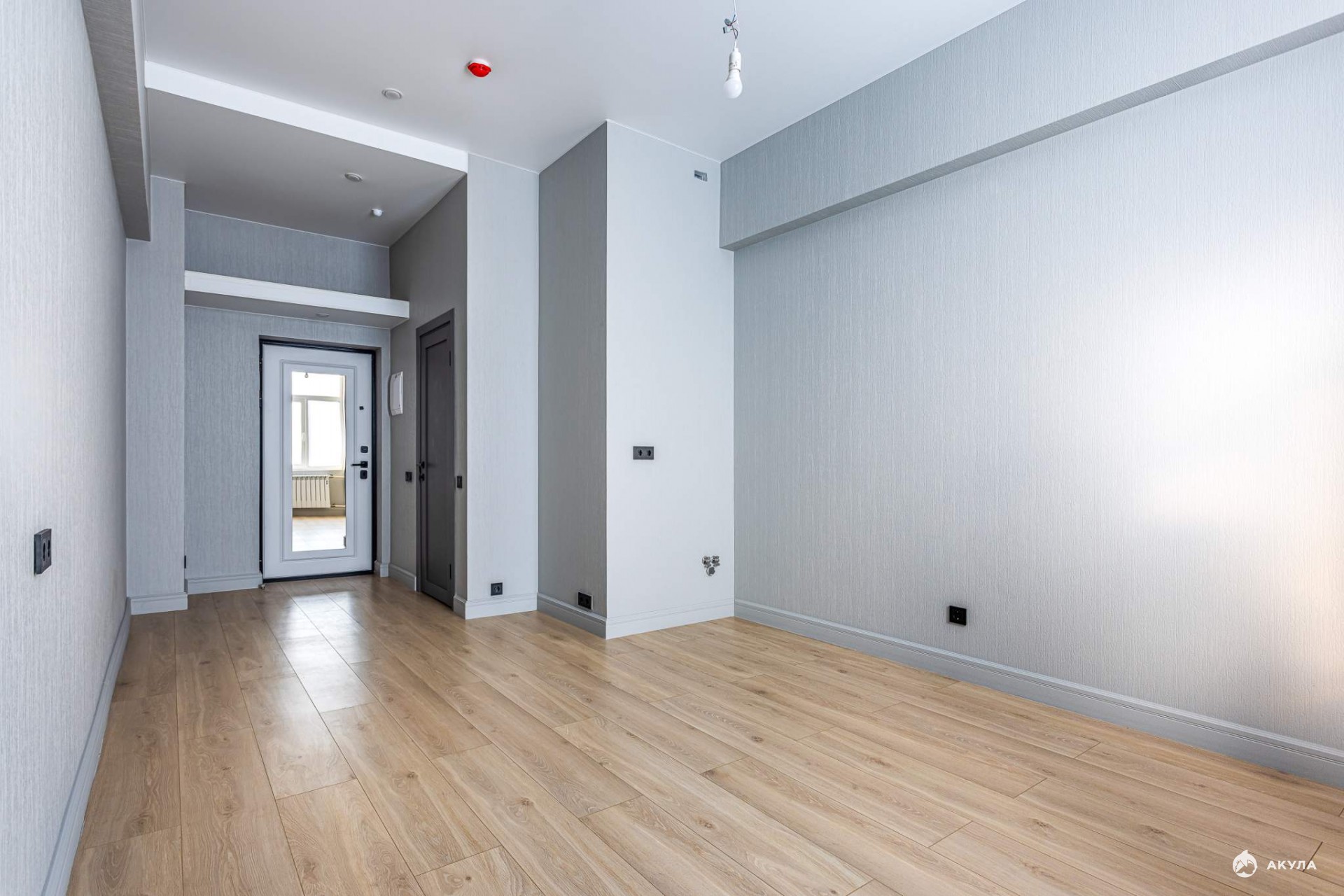 На полу постелен ламинат, на стенах поклеены светлые обои.