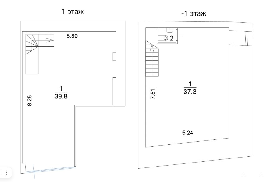 1 этаж: 39, 8 м² — идеально для зала, барной стойки, витринной зоны.
